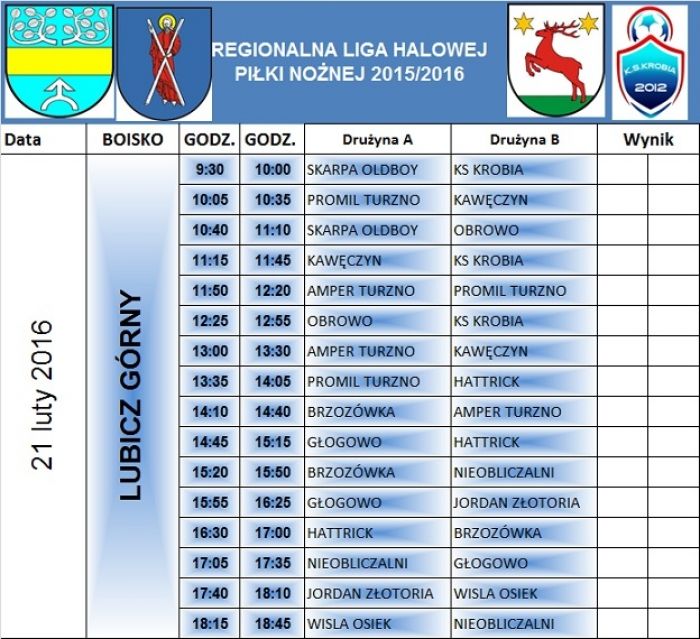 Harmonogram Ligi Regionalnej na 21 lutego br.